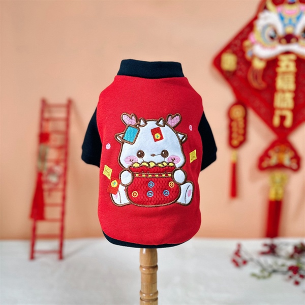Áo nỉ đỏ tay đen thêu rồng và túi tiền SIZE LỚN