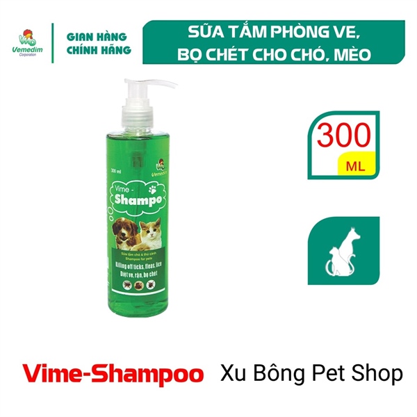Vemedim Vime Shampo: sữa tắm diệt và phòng ngừa ve, rận, bọ chét, ghẻ cho chó mèo.